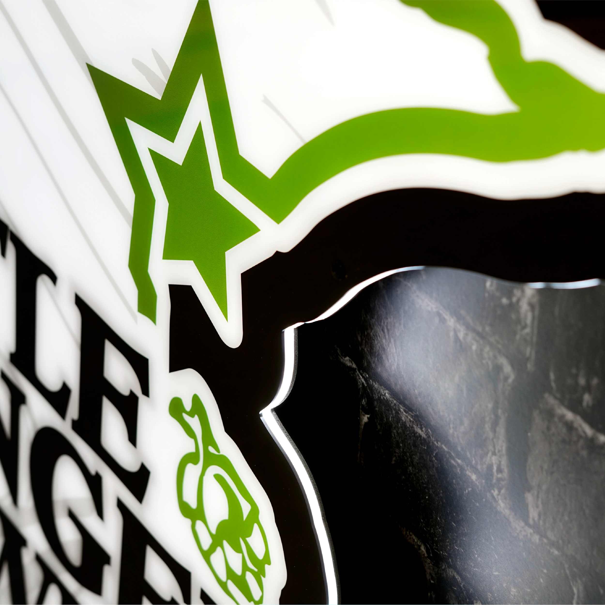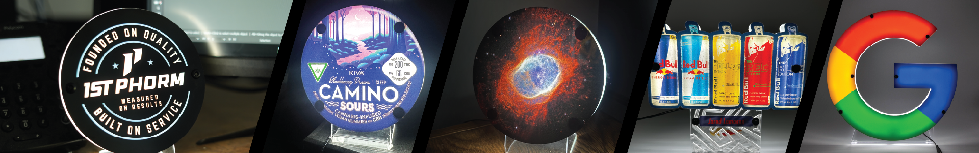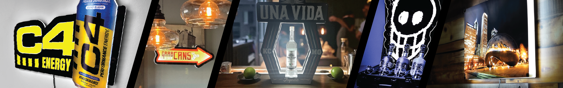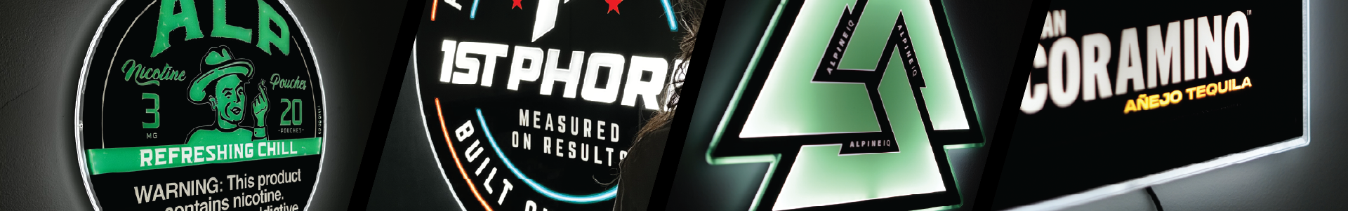 We create bold, custom LED signs that make your brand shine, big, bright, and built to impress. Our LED-powered signs offer a longer-lasting, greener solution with up to 50,000 running hours, significantly reduced power consumption, and lower costs compared to traditional neon. Unlike standard neon signs, which are limited in design and color, our LED signs allow for near-limitless creativity— featuring printed graphics directly on the sign surface and the ability to create stunning 3D effects. Proudly made just outside Ann Arbor, Michigan, each sign is designed, printed, and assembled in-house by our small team using nationally sourced materials. Elevate your space with our *Edgelite* wall art, which showcases high definition, backlit graphics and a beautiful edge glow for a modern, illuminated finish.